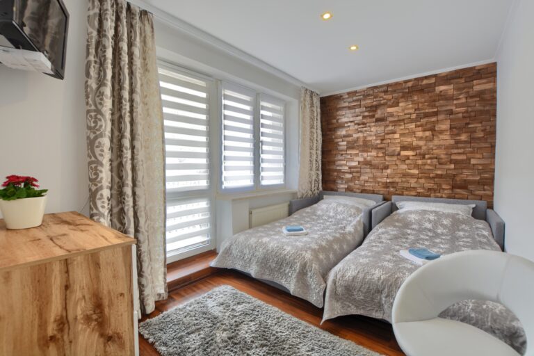 Pokój 4- osobowy typu studio z tarasem oraz dwiema sypialniami.